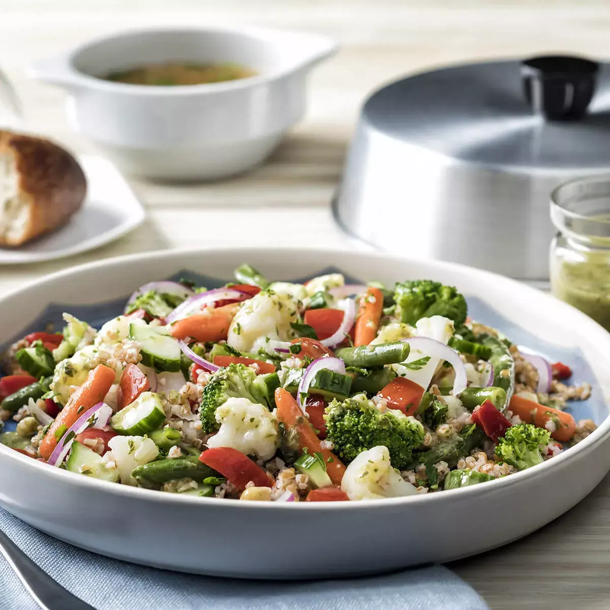- Farm-fresh mix of broccoli, cauliflower, green beans, carrots and red bell peppers
