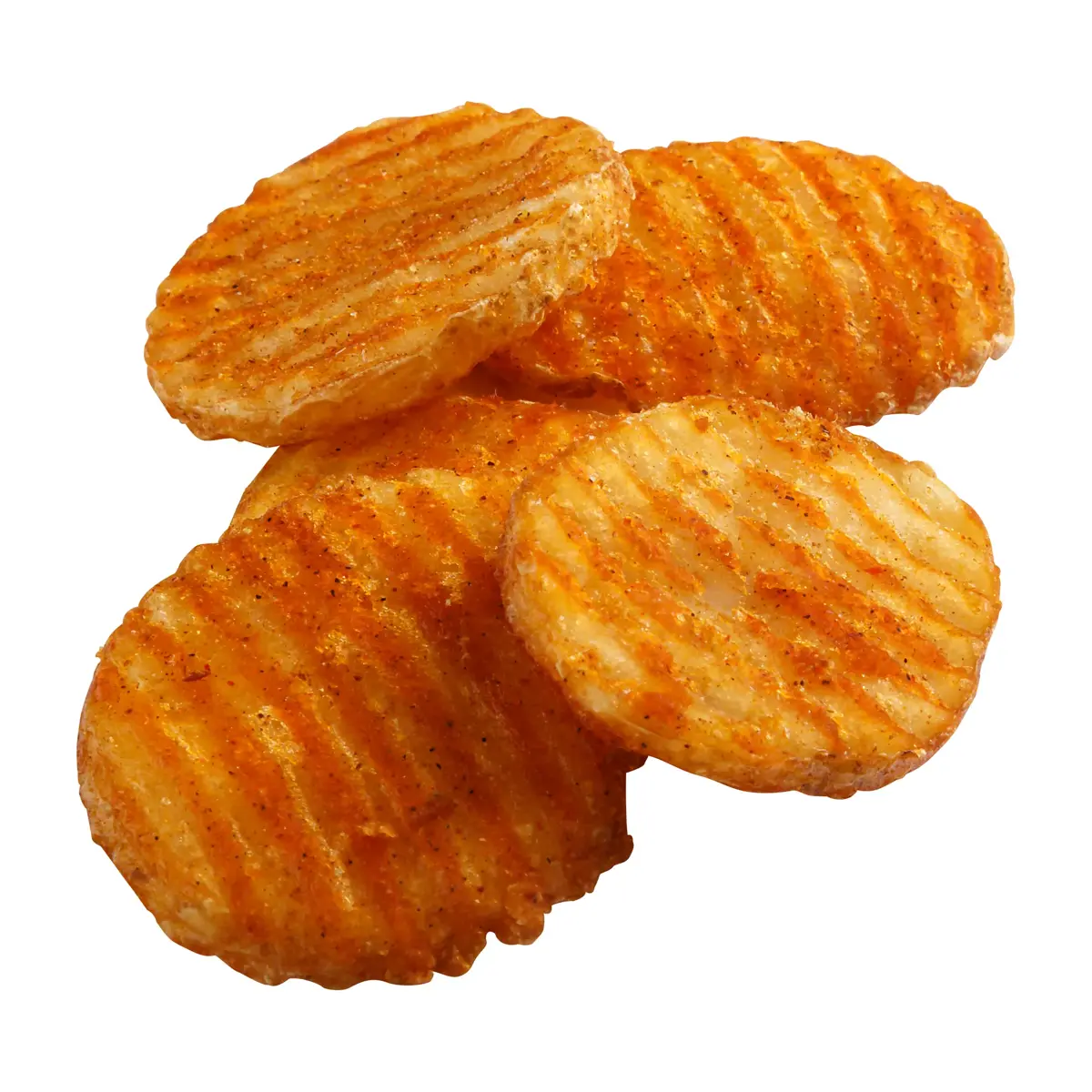 Simplot SeasonedCRISP® JR Buffalos® premium battered/seasoned fries are packed with lasting crunch, bold color and a spicy zing inspired by buffalo wing sauce. Great for dipping! This 1/4" slice offers extra crispness and superb bake-ability. Perfect for sports bars and casual dining.