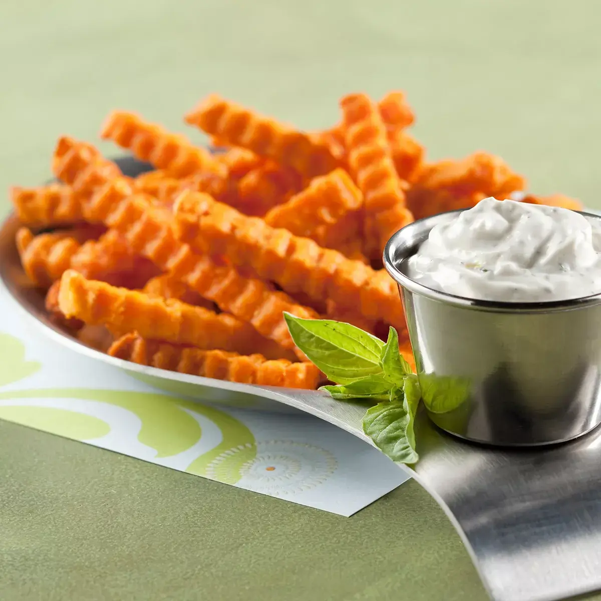 Curing is nature's way of putting the sweet in sweet potatoes. That's why all of our sweet potatoes are naturally cured right on the farm—and why Simplot Sweets® fries are so sweet by nature. The extra crispy ridges of this 1/2" crinkle cut deliver even more crunch.