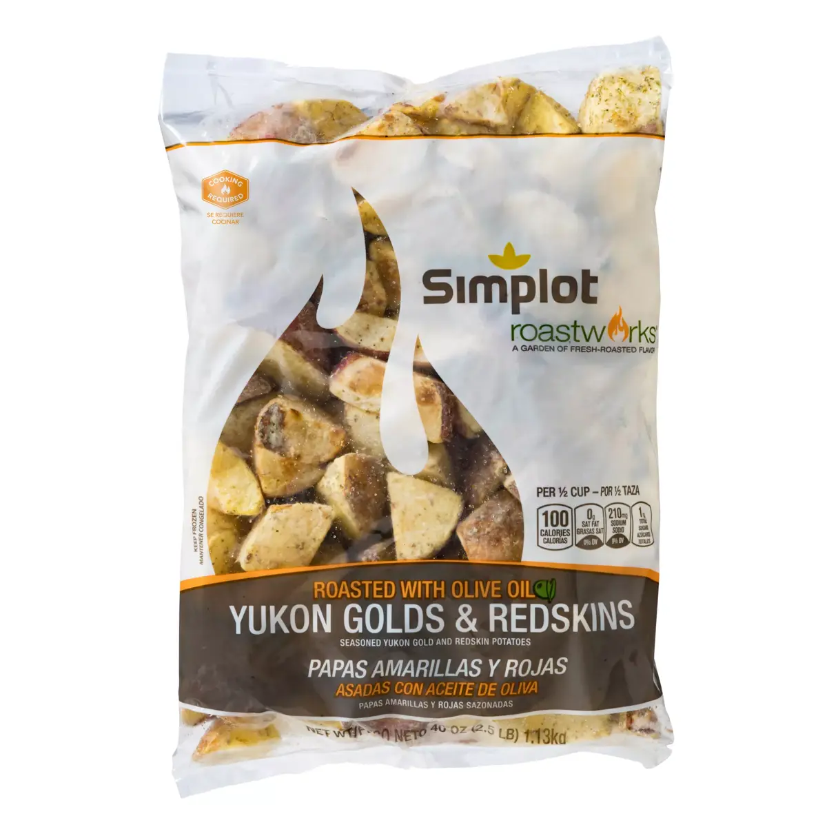 Si te encanta la calidad consistente con mínima mano de obra, te encantarán las verduras rostizadas RoastWorks®. Estos abundantes trozos de papas Yukon doradas y de cáscara roja rostizadas se condimentan con aceite de oliva, hierbas y especias. Solo necesitas calentar y servir para obtener siempre el sabor a papa y el color de primera calidad de las papas rostizadas.