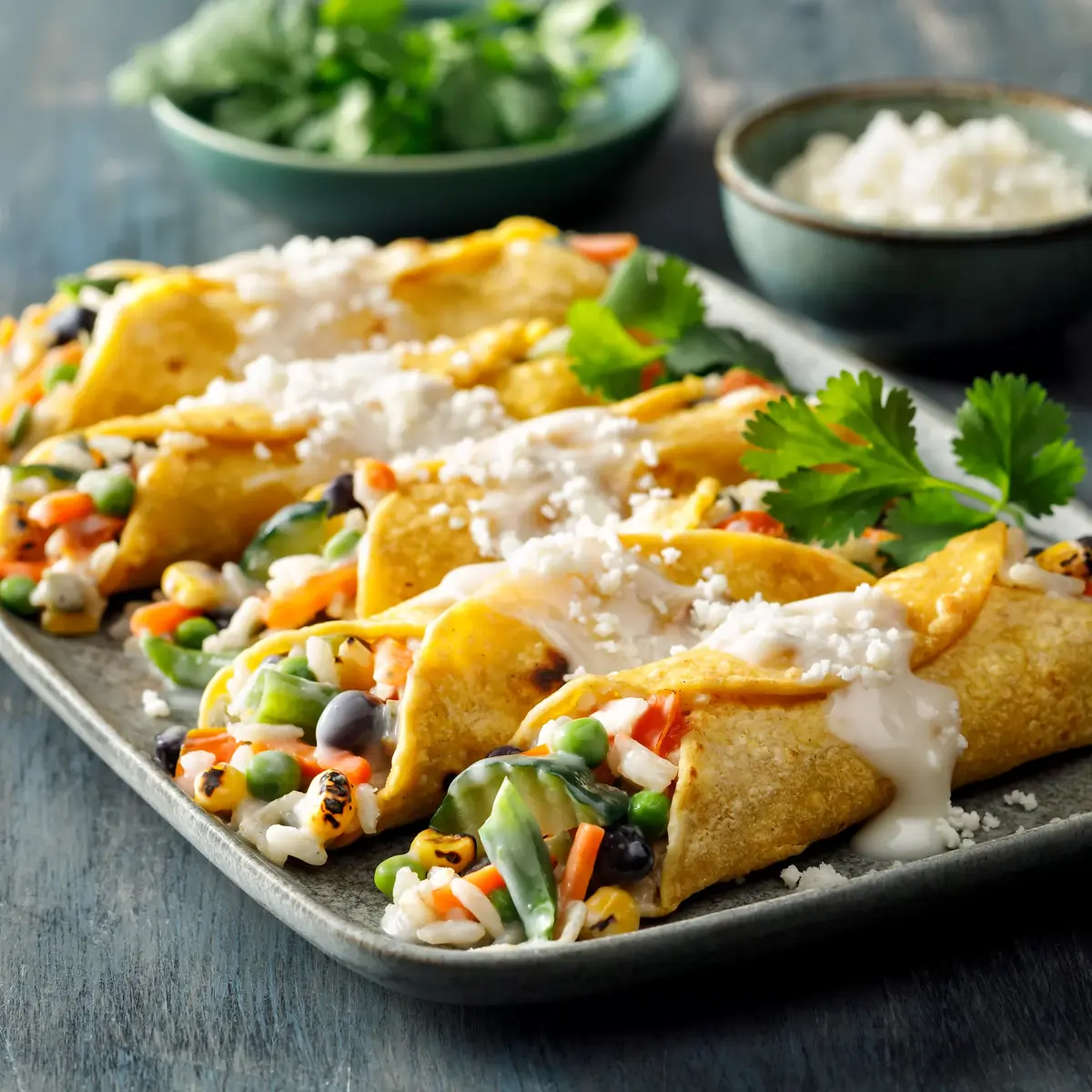 - Farm-fresh peas, zucchini, green beans, orange carrots and onions
